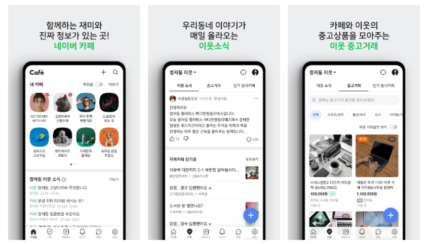 카페는 사용하기 좋은 서비스로 손꼽힙니다. 예전에는 다음 카페에 비해 조금 못 미친다는 인식이 있었으나, 지금은 카페를 새로 시작할 때 가장 먼저 네이버 카페를 떠올리게 될 정도로 인기가 많아졌습니다. 별도의 애플리케이션을 설치할 경우, 원하는 '키워드'를 카페에 설정해 두면 그 키워드에 맞는 새 글이 올라올 때마다 알림을 받을 수 있습니다.